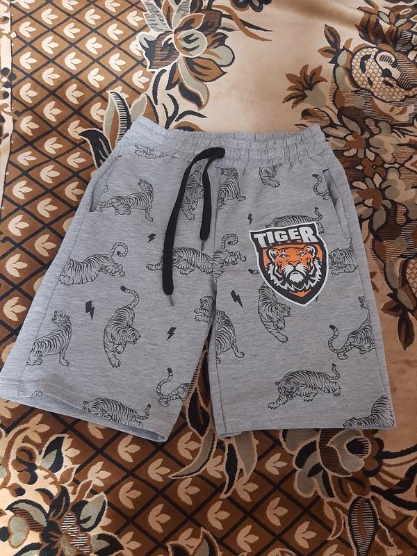 шортики для мальчика, в идеальном состоянии, ткань трикотажная. Производитель Турция, на возраст 7-8 лет, длина 41см. ПОТ 32-36см. В талии на резинке, шорты серого цвета, с переда принт,