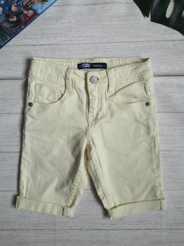 Классные джинсовые шорты на мальчика. В поясе есть утяжка. Замеры : длина 35, шаг 17, пояс 28.