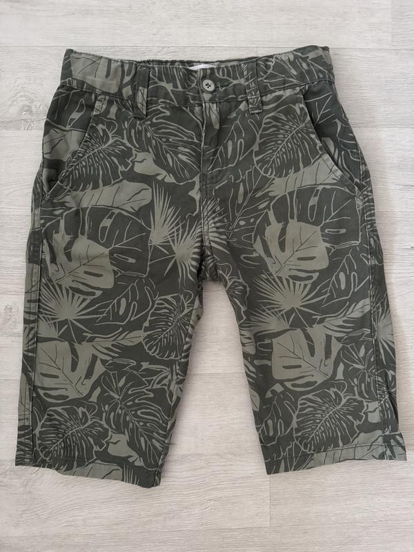 Стильні котонові шорти для хлопчика. На літо дуже класні, не жаркі, тканина натуральна. Пояс регулюється. Спереду по боках дві кишені, ззаду. Чудово підійде як під футболки так і під сорочки. Стан ідеальний, слідів носки немає. По бірці розмір: 8-9 років, 134см. Відповім на додаткові питання. Підписуйтесь на продавця, додаю оновлення одягу кілька разів в тиждень по приємним цінам.
