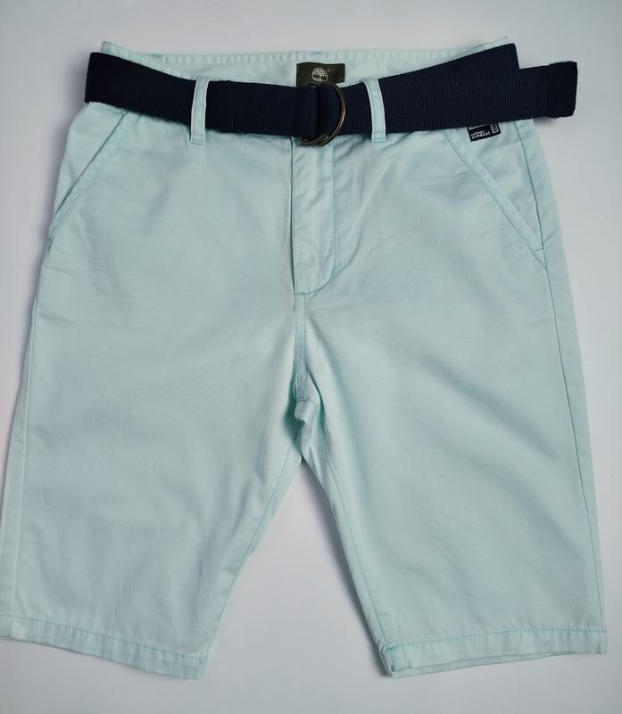 Шорты состояния новых, без пятен и дефектов. Размер указан 12/150/XS. Chino fit. Продается вместе с поясом. 100% бавовна. Цвет ментоловый. Носить со светлой бельем. Замеры длина 49 см ширина в поясе 34 см ширина в стегнах 42 см посадка по переду 26 см по заду 34 см ширина штанины по низу 18 см