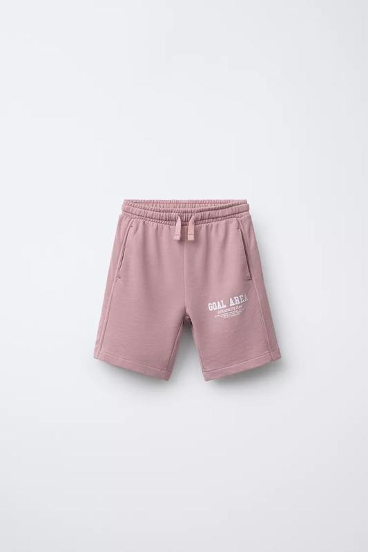 Плюшеві шорти з еластичним поясом і шнурками, що регулюються спереду. Кишені спереду та з обробкою ззаду. Текст із принтом спереду. Тканина з 86% бавовни