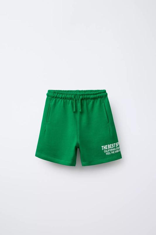 Шорти з еластичним поясом і шнурками, що регулюються спереду. Кишені спереду та набивний текст внизу. Тканина 100% бавовна. - Довжина: до коліна. - Крій: прямий. Розмір 5-6 років, 110-116 см.