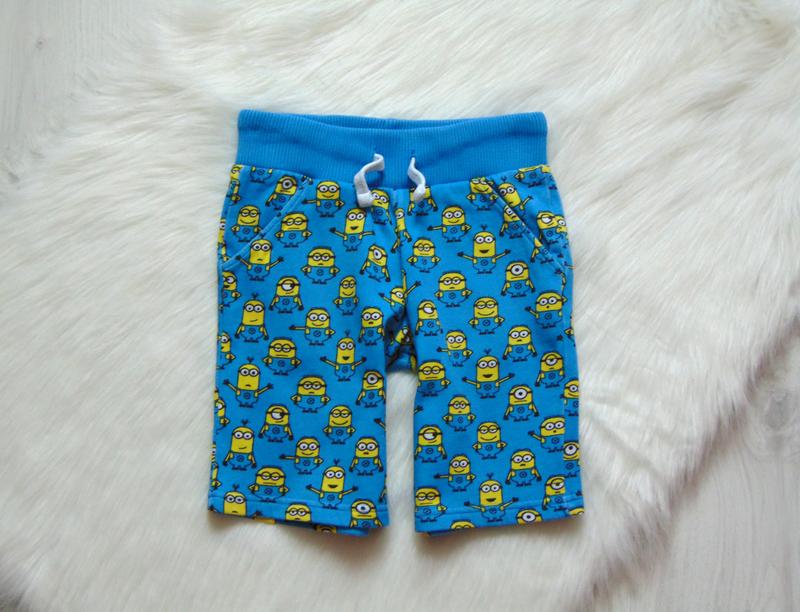 Яркие шорты для мальчика. Внутри утеплены флисом. Despicable me. Размер 5-6 лет. Состояние: отличное. Состав: 100% хлопок. Замеры: длина 35 см, шаговый шов 19 см, талия 27Х2 см, тянется 34Х2 см, бёдра 39Х2 см, ширина штанины внизу 18 см, глубина посадки 21-23 см. Цена 90 грн.