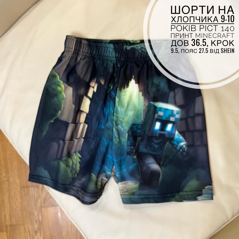 Шорти на хлопчика 9-10 років ріст 140 принт Minecraft дов 36.5, крок 9.5, пояс 27.5 від Shein