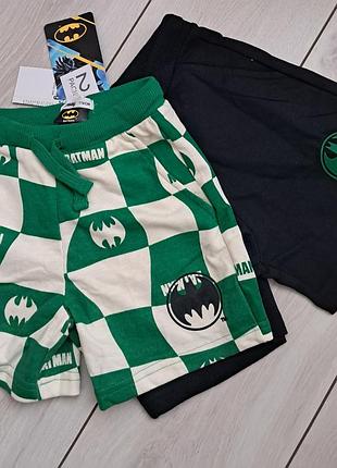 Дитячі шорти мають принт, супергероєм Бетменом. Вони чорного та зеленого кольору із зеленими зав'язками та логотипом Бетмена на одній зі штанин. склад 100% сотон розмір 98 2-3р 110 4-5р 116 5-6р