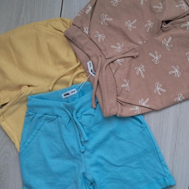 Детские шорты разных цветов (бежевый с принтом пальм, голубой, желтый). На хлопчика 110 см 4-5р слад 100% катон