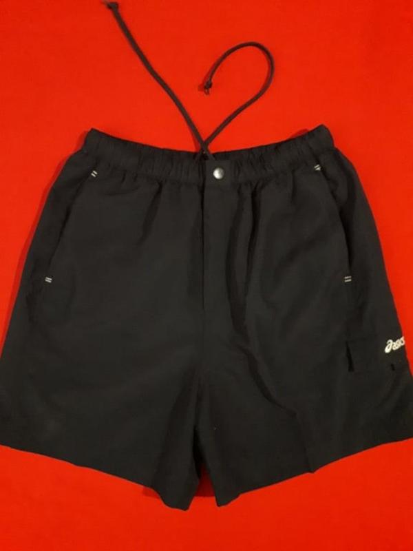 Оригинальные шорты Asics. Пояс на завязках и кнопке. Два боковых кармана, два сзади. Размер подростковый XLB Замеры: -длина по внешней стороне 41см -длина по внутренней стороне от матни 12см -полуобхват в талии в спокойном состоянии 31,5см -полуобхват штанины в районе матни 32см -полуобхват штанины по низу 30см