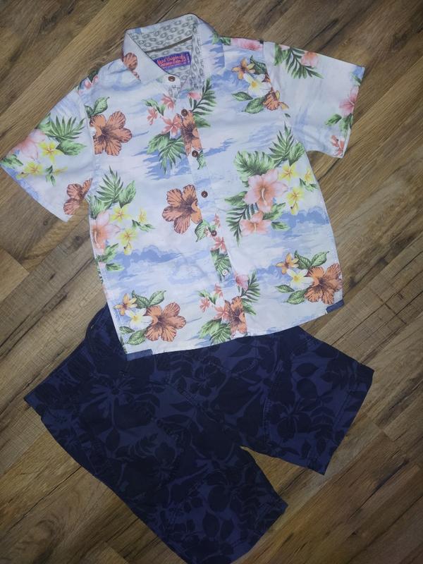 Комплект тенниска фирмы Next по бирке на 5 лет но реально на 6-7лет ( длина 45см, пог 35см) шорты фирмы M&S бирка срезана но мы носили в 6-7 лет ( длина 42см, шаг 20см, поб 36см, пот 29см)