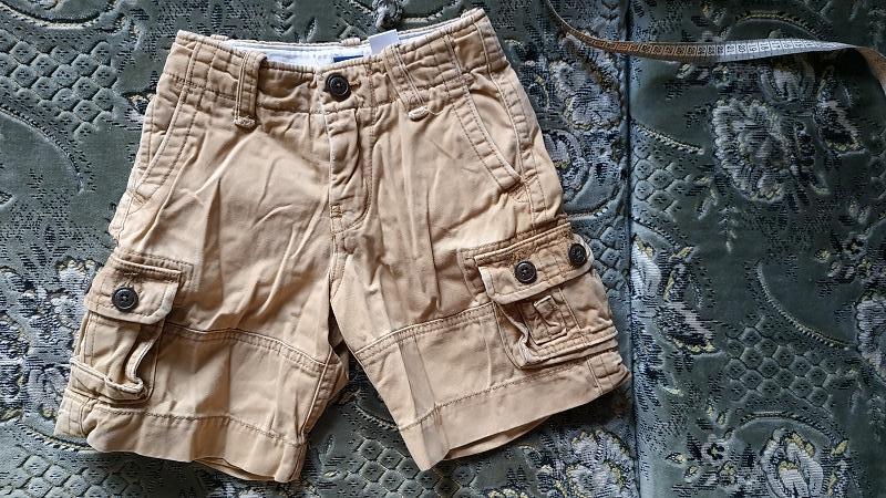 Шерты св.коричневого цвета для мальчика Gap Kids на 5 лет в шертах много карманов(есть нюанс сзади на карманах обманках отсутствуют пуговицы) в поясе есть резинки затяжки состояние очень хорошее ш по талии 28 см ш бедер 36 см