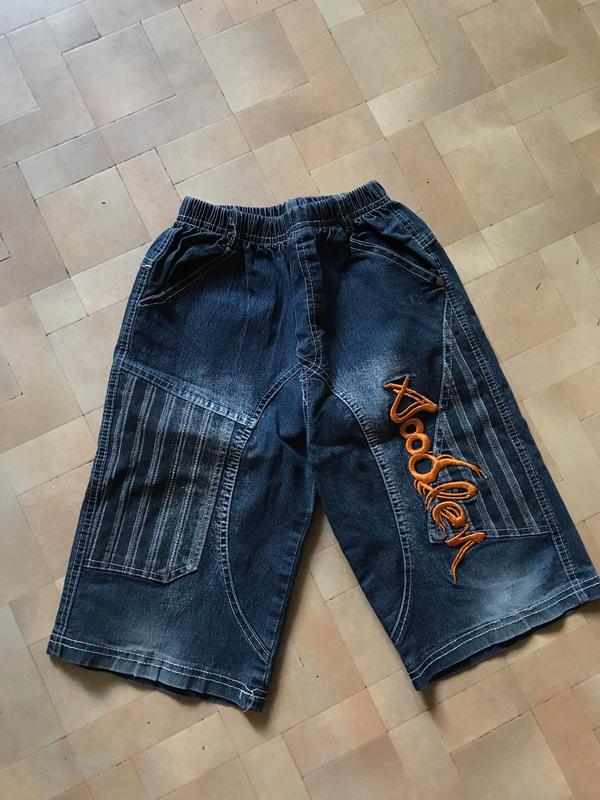 Джинсовые шорты на мальчика 4-5лет.Производство Турция. Цвет черный. Пояс на резинке.Спереди сбоку надписи.Карманы есть и впереди и сзади. Шорты б/у,но в хорошем состоянии.