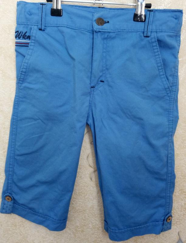 Шорты на мальчика возрастом 8-9 лет. На поясе есть утяжка, можно его отрегулировать. Замеры: пот 33см, поб 36см, длина изделия 49см.
