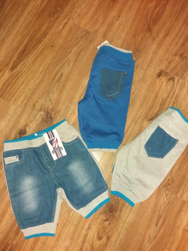 Шорты новые с переди джинс з-за хлопок. Пояс на резинке.Производитель Венгрия. Цвета по размерам . На 5-6г. ( серые). На 7-8г.(серые). На 9-10г(синие). Замеры 5-6г. Дл.бокового шва 38см. Дл.внутр.шва 16.5см. Пол.обхват талии 28см. Пол.обх.бедер 35.5см. Замеры 7-8г Дл.бокового шва 43.5см. Пол.обхват талии 29.5см Пол.обх.бедер 37.5см. Замеры 9-10г. Дл.бокового шва 45см. Дл.внутр.шва 22см. Пол.обхват талии 29.5см. Пол.обх.бедер 39см.