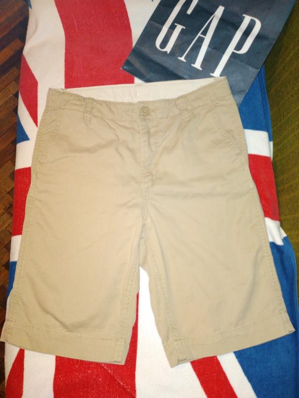 Шорти Gap. 100% х/б. У відмінному стані. 4 кишені. Внутрішні утяжки. Заміри: ПОТ 38 см ПОБІДИ 44 см Довжина 49 см Ширина штанини низ 22 см Відправлю Новою поштою за попередньою передоплатою або зустріч у Києві