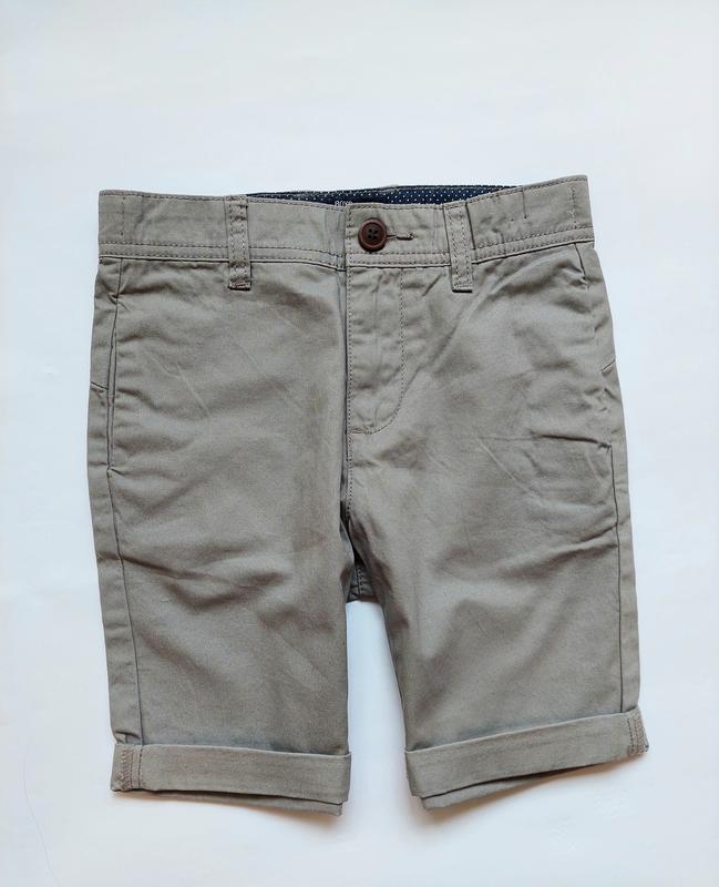 Matalan,7 лет 100 коттон Новые,без бумажной бирки,не ношены. Цвет серый,как на 4 фото Внутри пояса утяжка. Длина 35 см с подворотом(как на фото). пояс 29.5 см Бедра 36.5 см По бокам 2 кармана +сзади