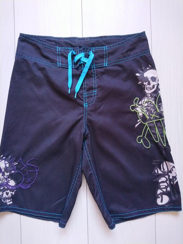 Шорті тоненькі з плавками в середині в дуже хорошому стані Матеріал поліестр Обрізана етикетка З дефектів позаду трішки потерті На вік 10-12 років Довжина з боку 50 см, Внутрішній шов штанки 25 см Посадка спереду 27 см Півобсяг пояса 34-35 см Півобсяг стегон 44 см