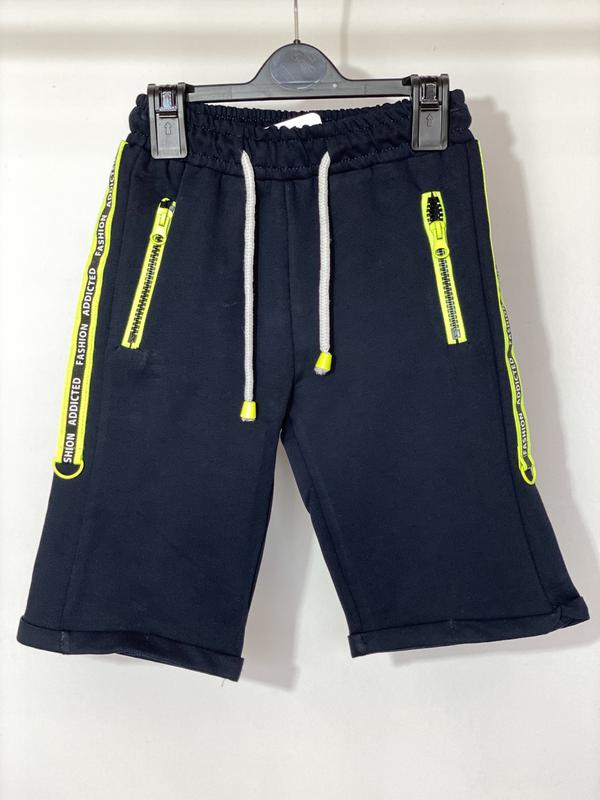Шорты удлиненные трикотажные для мальчика 6 лет 116 см, синего цвета на широкой резинке в поясе, с яркими лампасами по бокам. Эти шорты станут прекрасным дополнением летнего гардероба.
