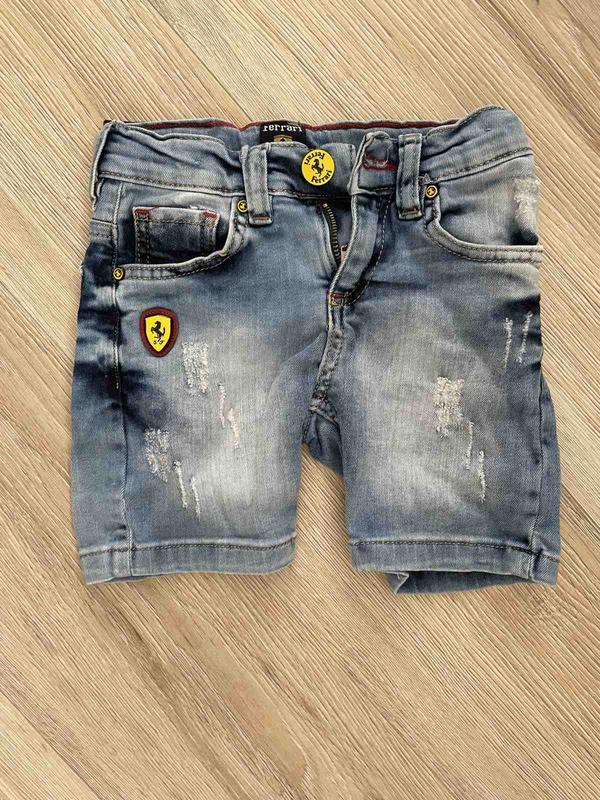 Очень классные модные джинсовые шорты на мальчика ferrari. Замеры: длина 28 см. шаговый 11 см. пот 25 см. поб 28 см. внутри есть резинка и пуговка для регулирования талии.