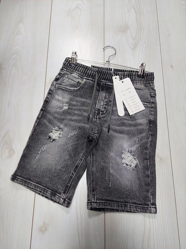 Джинсовые шорты для мальчика от венгрийского производителя "F26 COLLECTION" Состав: 66%- хлопок;31%- полиэстер;3%- эластан. Размер в наличии: 10р.134-140 Рост. пояс-34см. по резинке. длина-44см. ПОБ-45см.