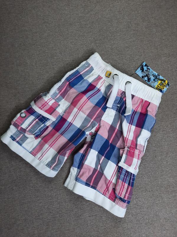 Нові шорти, дуже гарні, колір просто суперовий. З підкладкою-сіточкою всередині на 2-3 роки заміри: довжина 33см, напівобхват талії 23см(+резиночка тягнеться)