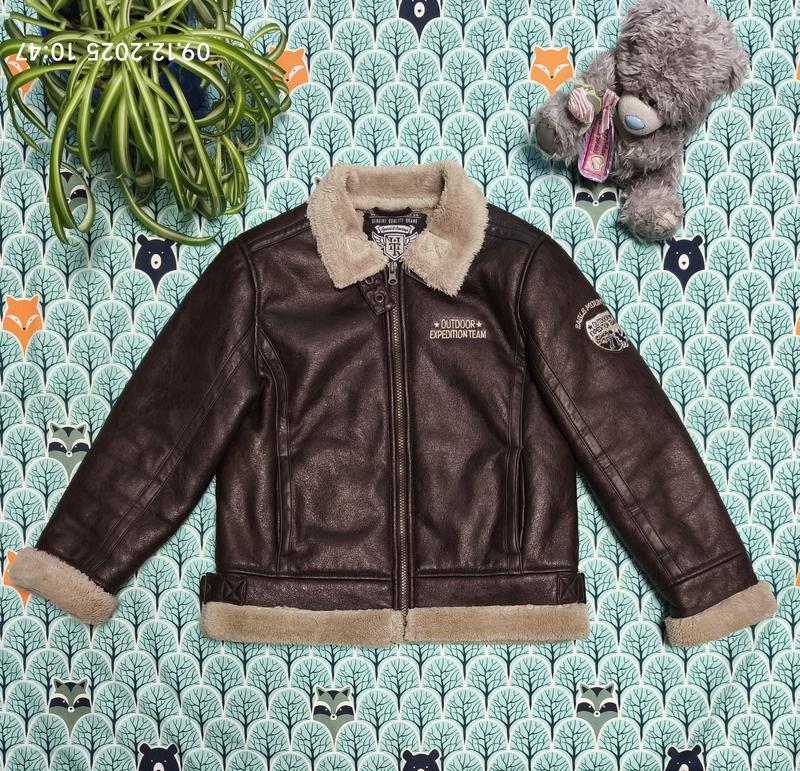 Дубленка на мальчика 9-10 лет, рост 140 см, нидерландской фирмы C&A, высокого качества. Дубленка из искусственной кожи с отложным воротником, застежка на молнию, два прорезных кармана. Искусственная меховая подкладка.