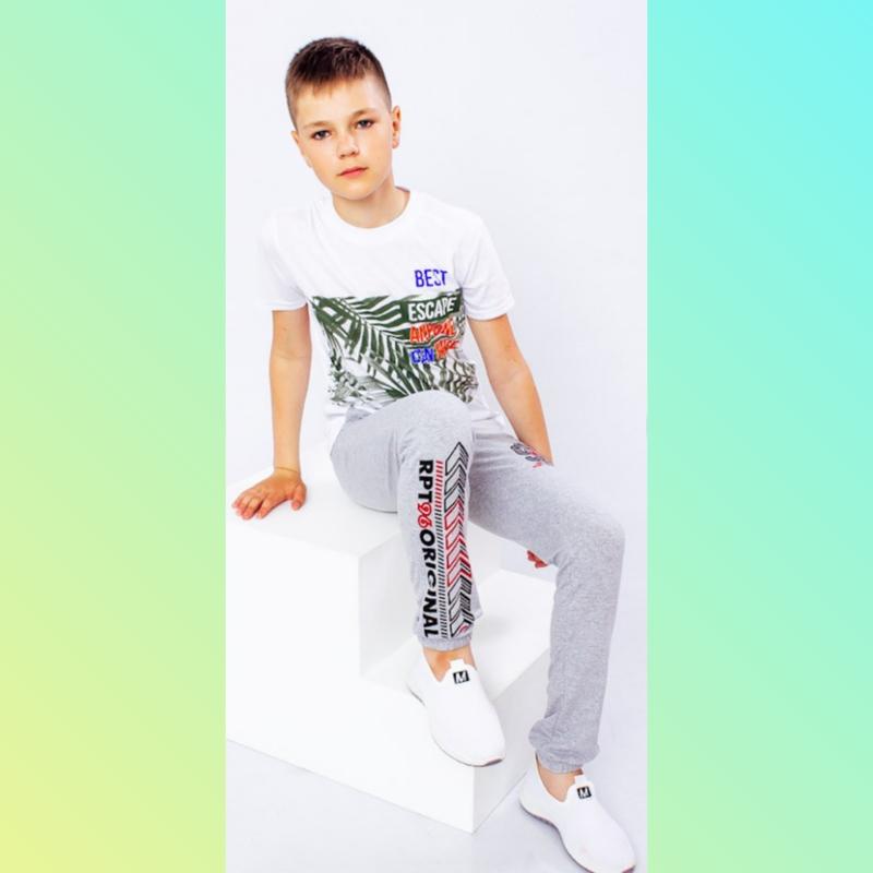 Штаны спортивные, двунитка, серые с накатом, 104-110см, 4-5лет