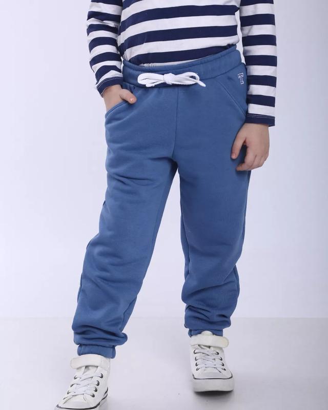 Штаны детские спортивные базовые, турецкий трикотаж трехнитка хлопковые, синие