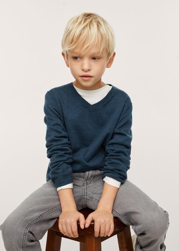 Вязаный свитер с V-образным вырезом стандартная модель. Бавовняна тканина. приталений. Без застежки. Тканина тонкого трикотажу. V-образный вырез, длинный рукав. Цвет морской волны