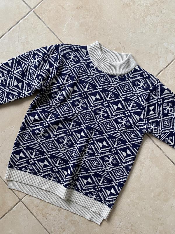 Свитер замечательный, качество отличное! Около 134/146 см где-то на 8 лет. Полушерсть.длина -54,шир-40,рукав-47 см. Состояние супер, идеально!