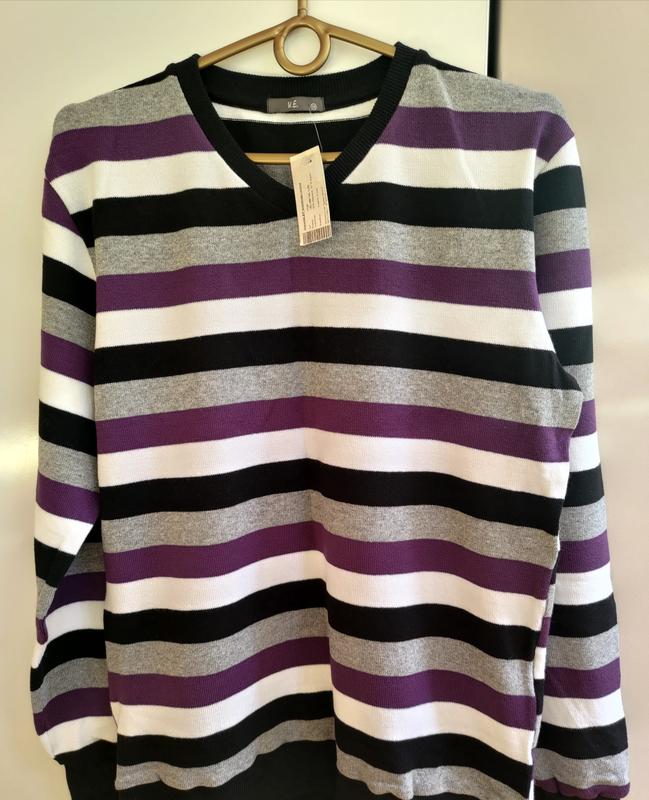 пуловер подростковый в полоску. вырез на зуб. новый. размер на рост от 140 до 155 см. среднего телосложения. новый.