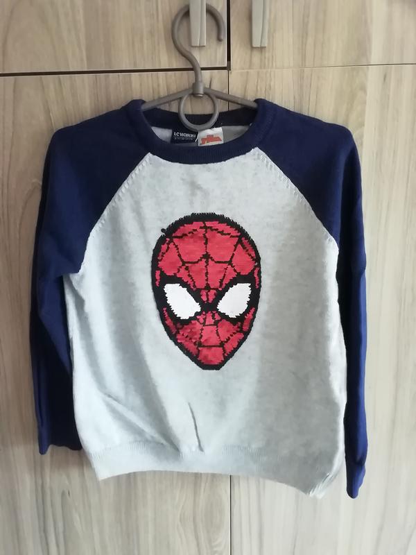 Світерок для хлопчика, турецької фірми LC WK(купували в Туреччині). Маска вишита паєтками та змінюється колір. Довжина 44см,рукав реглан (вимірюється від горловини через плече) 50см,ширина між проймами 40см.Без плям.