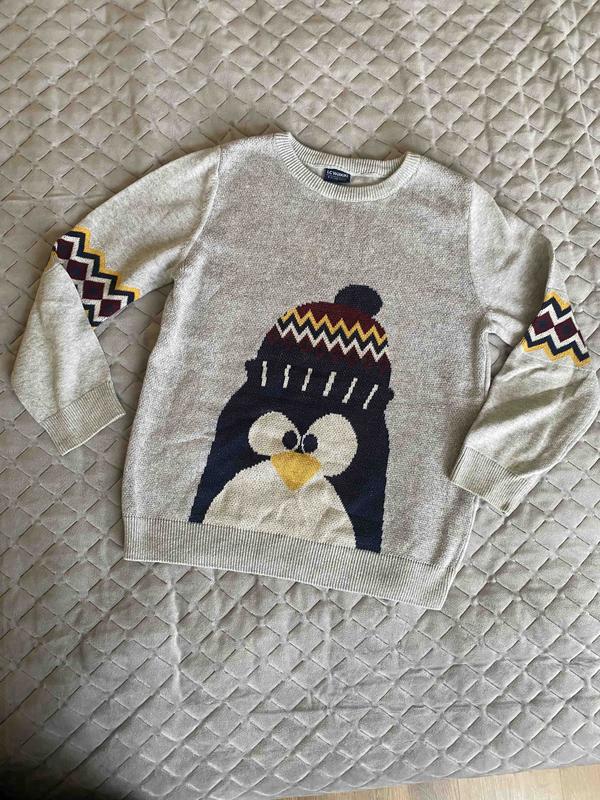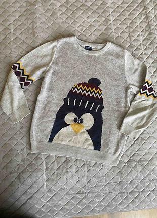Свитер для мальчика с прикольным принтом пингвина. Фирма Waikikiki. Размер 116-122 (6-7 лет) Планомирный. Длина рукава 43 см.