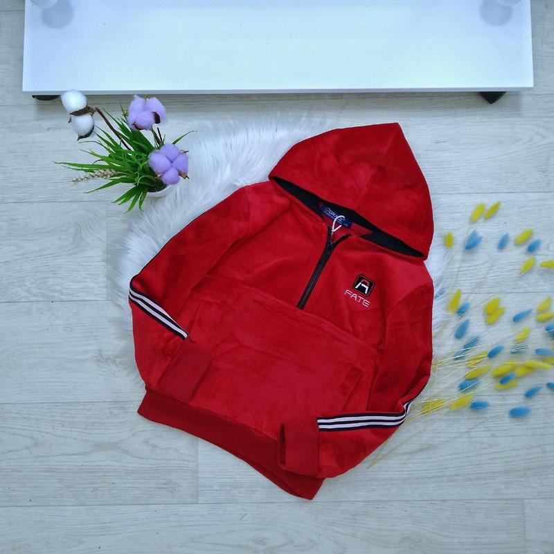 Красный велюровый худи