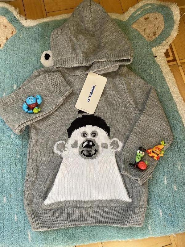 Интересное Худи-свитер.3-4 года( маломерки.Будет точно с 3 х лет).Смотрите по замерам. Длинна 41 Рукав 34 Плечи 25