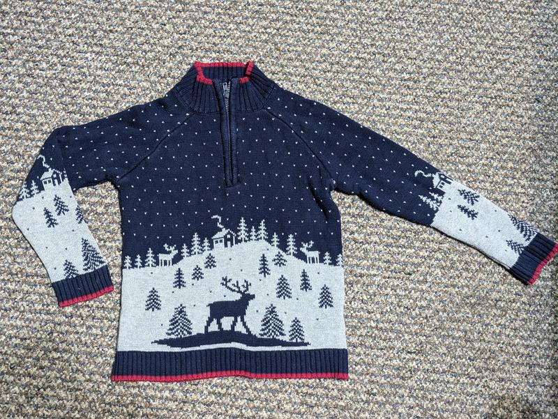 Улюбная одежда нашего сына на прохладную пору.Такая уютная и красивая свитерик. 3-4 года,104 см, согласно бирки. Замеры: длина от плеча 40 см., ширина под подмышками 31 смс.,рукав-реглан, поэтому замер от ГОРЛОВНИ 45,5 см.