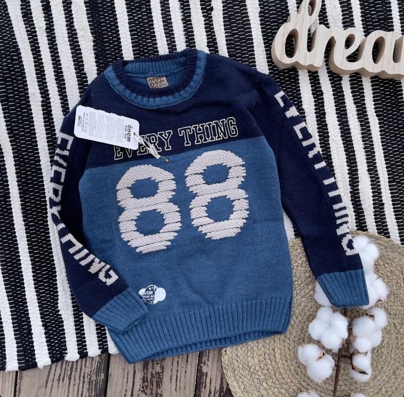 Свитер вязаный производства Турция. Надписи спереди и на рукавах. Качество - отличное. Акрил! Не скатывается! Размер: 110- по набору 5-6- рукав 37 длина 47 134- по бірці 9-10- 44/53 Цена: 575 грн КрохпельКа