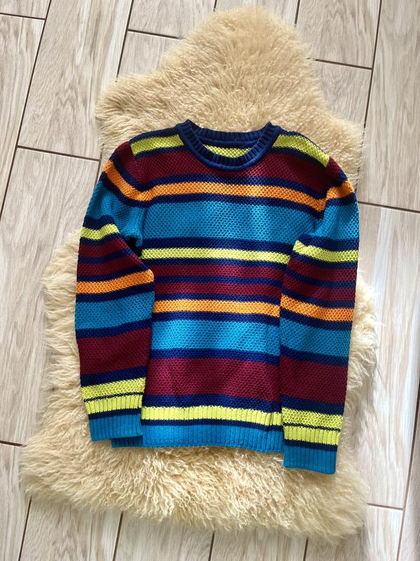 Яркий свитер от H&M на 8-10 лет. Бирку срезали, потому что мешала при носке. Длина 51, рукав 50, плечи 33, ширина 40