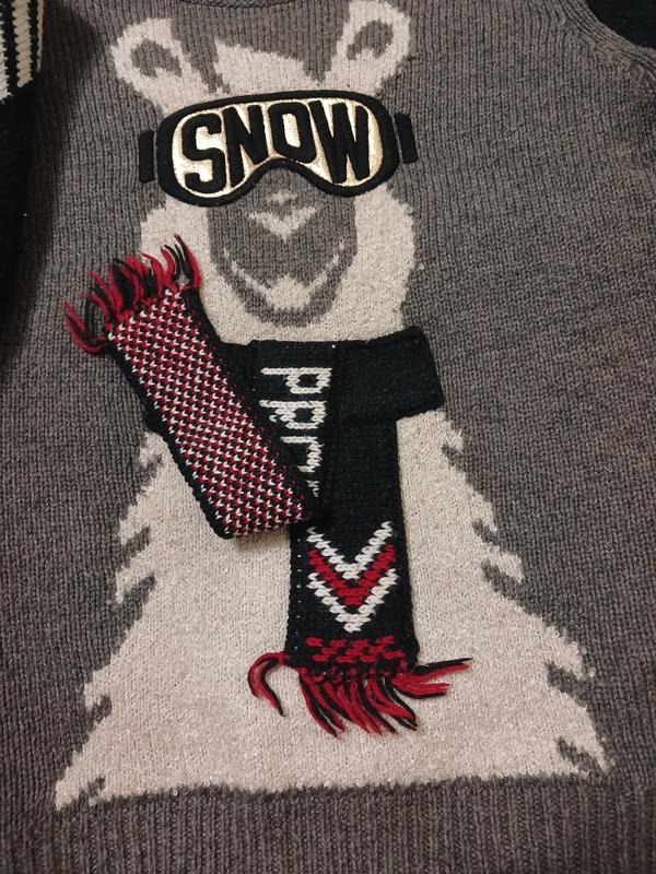 Красивый теплый свитер. Размер на этикетке не соответствует действительности, ориентируйтесь на замеры. Длина рукава - 39 см, по спине - 46 см, под рукавами- 40 см.