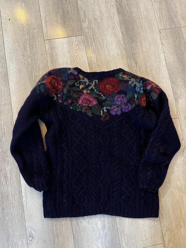 Теплый вязаный свитер, кофта, с цветочным принтом, винтажная. Состояние отлично подойдет на хс