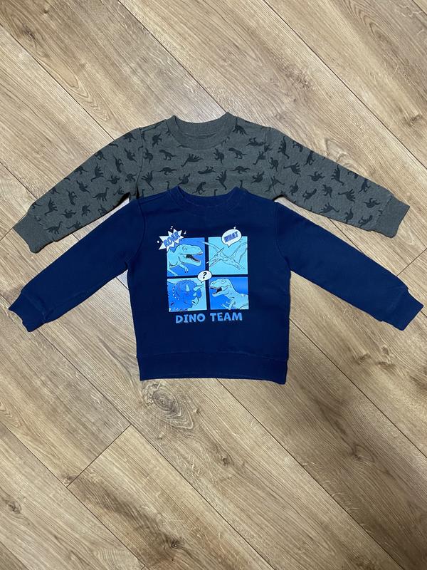 2 свитера в хорошем состоянии, на мальчика 3 рочков. Замеры зеленого с динозаврами: длина 36см, длина рукава 33см, ширина 33; замеры синего - на 2см больше зеленого. Цена указана за 2 изделия