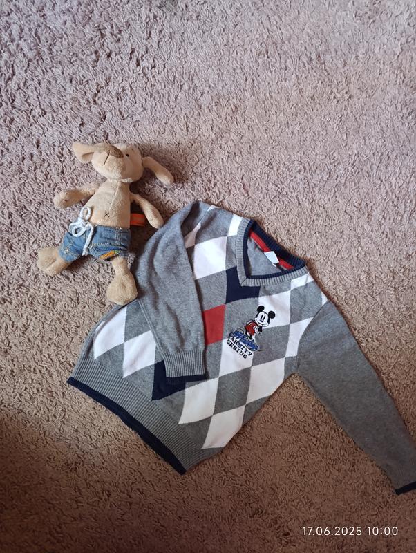 детский свитер легкая вязка из серии Disney ❗состояние очень хорошее 🏷️ 98 👶🏻 возраст 3-4 года 📏 пог 33 длина 39 длина рукава от плеча 35 🎨серый/ белый