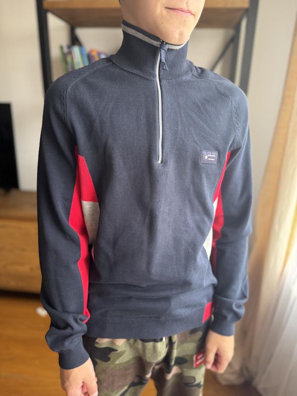 Светр без етикеток , точно італійська марка. Носив старший син. Мало носив тому стан навіть манжету ідеальний ні грама не зіпраний. Светр дуже стильний, замочок під шию. На ріс 165-175 . Бо мій має вже 180 см і рукава короткі. Приємний на дотик.