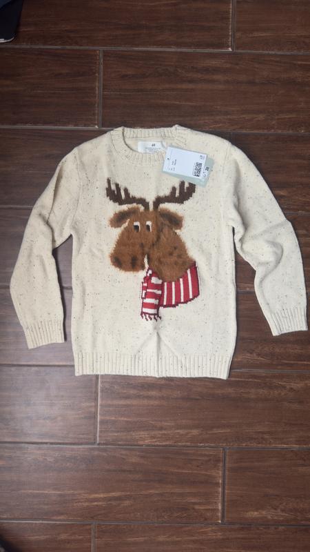 Новий светрик з святковою тематикою , колір беж. На вік 4-6 років, зріст 110/116