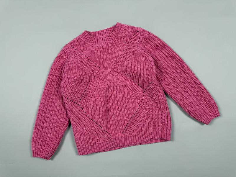 Дитячий вʼязаний светр. Яскравого рожевого кольору Розмір 5-6 років 116 см