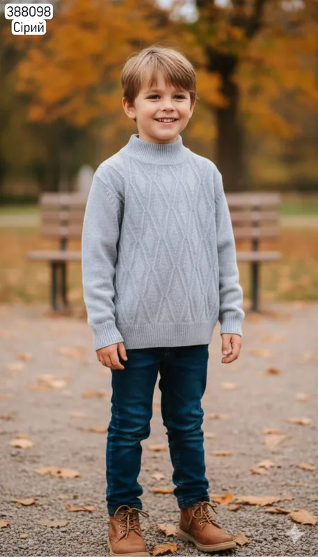Детский свитер для мальчиков ❤️ Машинная вязка✅ Размеры 110, 116, 122, 128, 134, 140 см ✅ Цвет - серый✅ Устойчивая горло✅