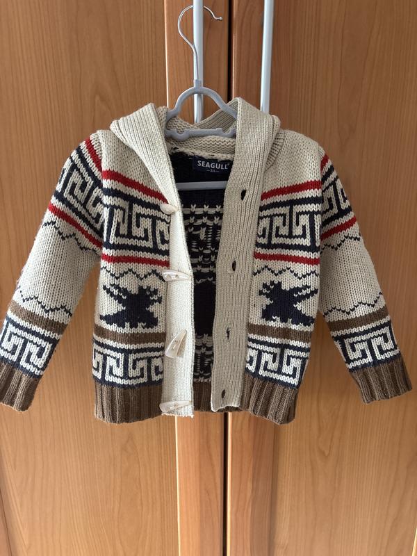Теплий дитячий вʼязаний светр з капюшоном та дуже гарними ґудзиками. Ідеальний стан та прекрасна якість 🤩 На вік 3-4 роки Довжина по спинці 36 см, ширина в грудях 30 см, довжина рукава 34 см.