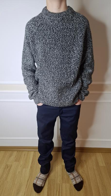 Теплый вязаный свитер на мальчика или на девочку, по бирке размер S, фото сделано на ребенке ростом 158 см 12 лет