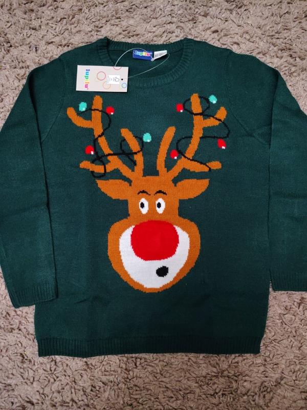 Продам новый яркий новогодний свитер на мальчика Lupilu 110-116см, на 4-6р. Вмонтированная гирлянда, светится (указано на фото). ЗАМІРИ 💥 Длина 46см, длина рукава 42см, плечи 28см, ПОГ - 37см