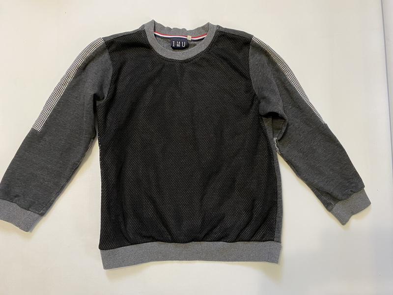 Качественный свитшот на флисе на мальчика с накладной сеткой спереди Состояние отличное,без следов носки Длина 54 Плечи 34 Рукав 46 Груди 44