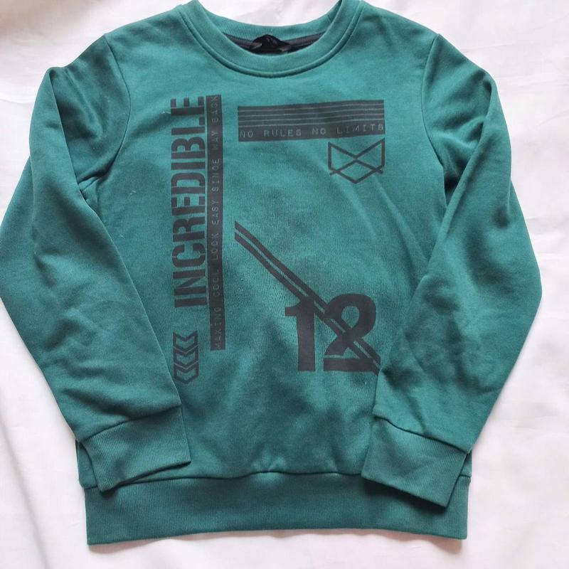 Кофта с начесом, темно зеленого цвета, в красивом состоянии, хорошо тянется, ткани плотная и мягкая приятная на ощупь, рукавах и по низу на манжете, размер на 10-11роков, состав на фото. Замеры: по плечах 37+7 под руками 46+10 длина 54 по низу манжета 39+20 рукава 55/65.