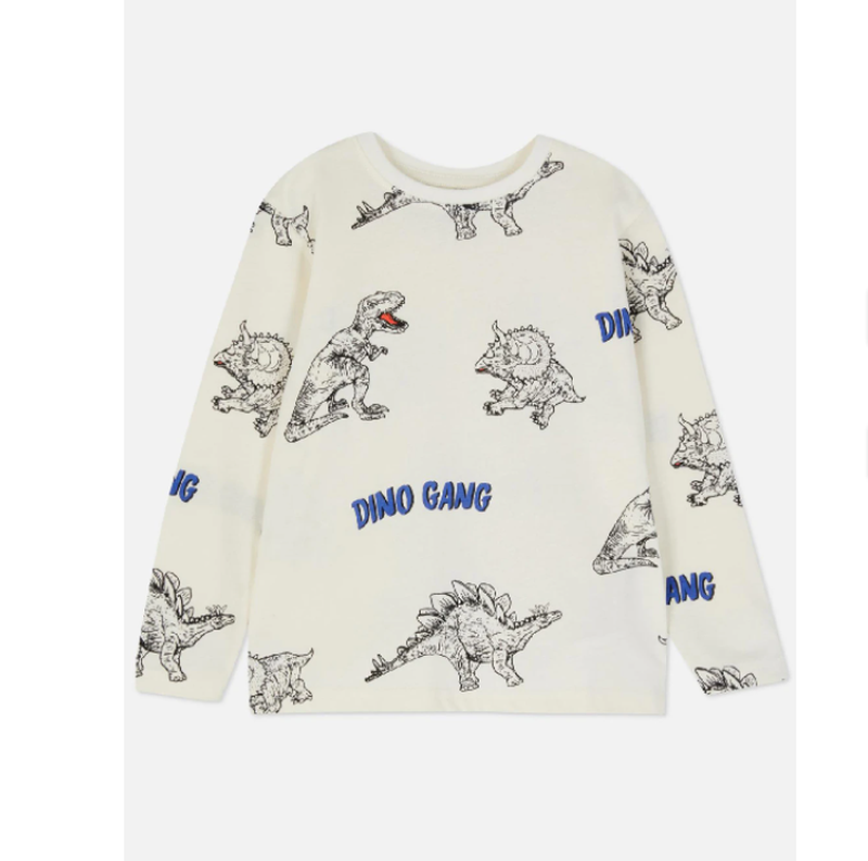 Светлый реглан лонгслив с динозаврами primark на мальчика 4-5 лет